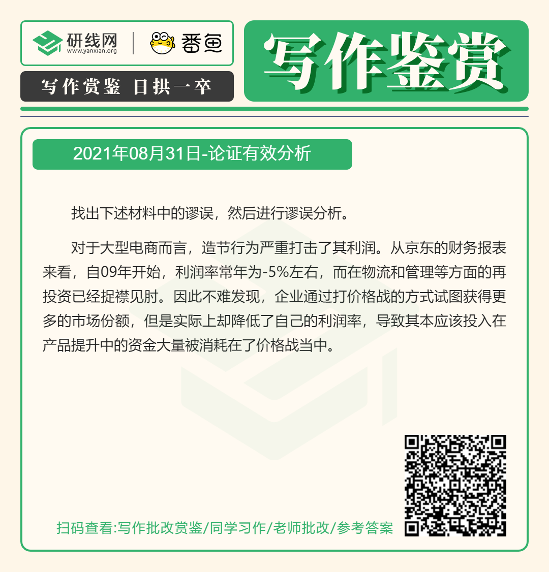 寫作鑒賞,日拱一卒,考研寫作鑒賞,攻克寫作難關!今天小編整理了“2022考研寫作備考:8月31日寫作鑒賞及答案”,希望能對廣大考生有所幫助!