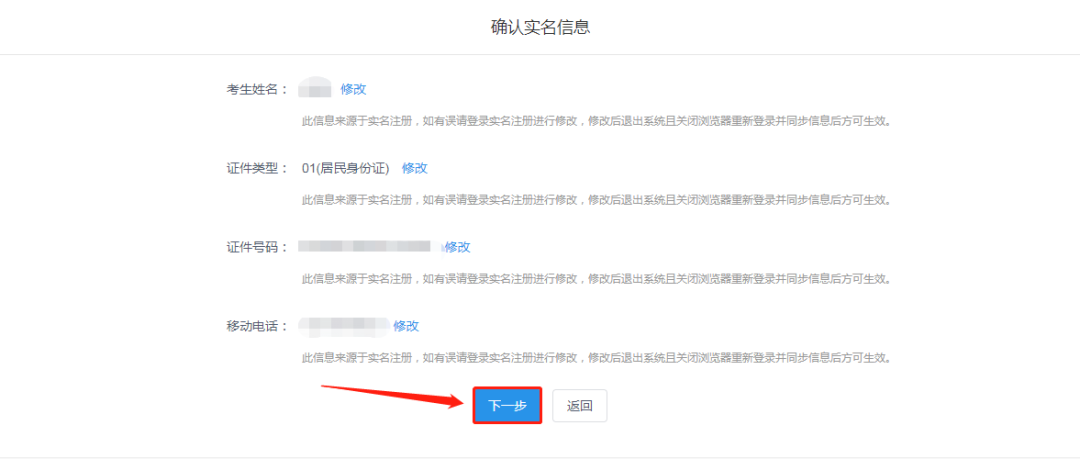 (11)點擊“下一步”確認(rèn)考生信息。