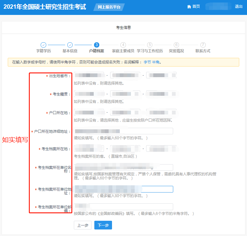 (6)點擊“下一步”進(jìn)行戶籍檔案信息填寫。