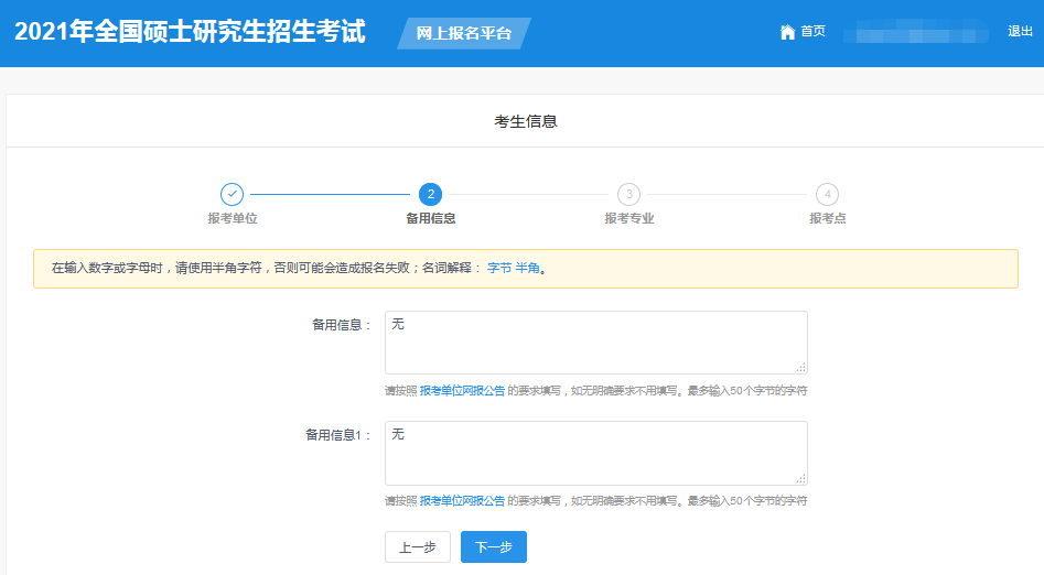 第二步填寫報考信息