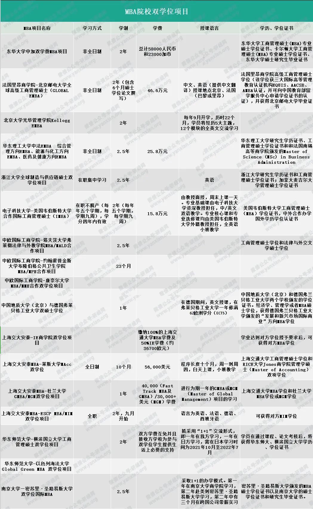 那么MBA院校雙學位項目有哪些呢?今天來跟小編一起了解下吧~