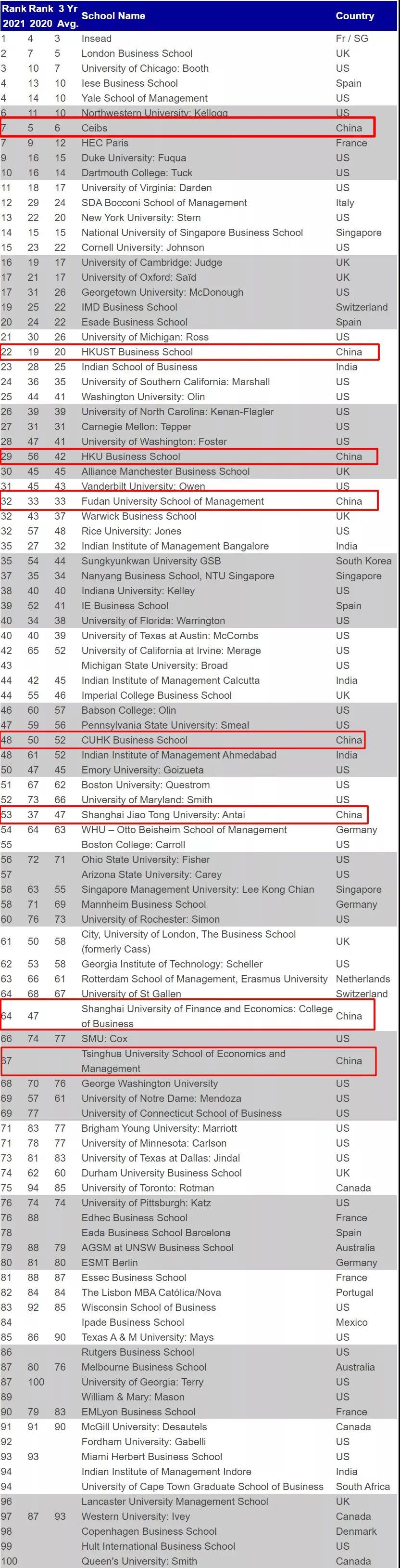 原文標題:2021全球MBA百強,8所中國院校躋身榜單!