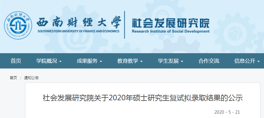 原標題:社會發展研究院關于2020年碩士研究生復試擬錄取結果的公示