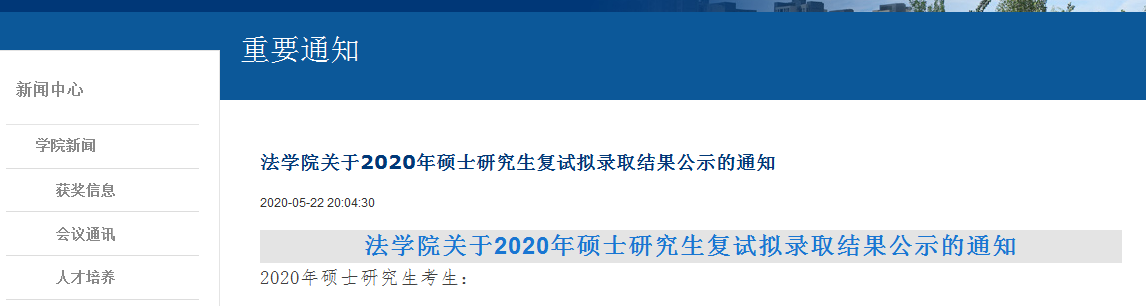 按照教育部和四川省高等教育招生考試委員會的要求,根據學校相關規定,法學院2020年碩士研究生復試錄取工作已順利完成。報經學校研招辦審核后,現將擬錄取結果公示如下。詳細成績以及錄取狀態可通過西南財經大學研究生招生網(法學院關于2020年碩士研究生復試擬錄取結果公示的通知)查詢。公示期為10個工作日,公示期間,如有異議,請咨詢法學院楊老師,聯系電話:028-87092273