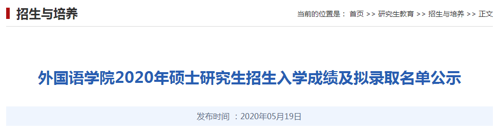 原標題:外國語學院2020年碩士研究生招生入學成績及擬錄取名單公示