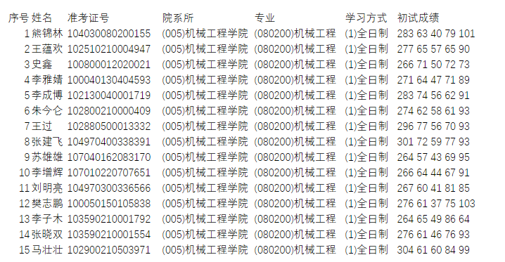 以上就是“2020考研擬錄取名單:武漢輕工大學機械工程學院碩士研究生招生第四批復試名單公示”的全部內容,更多錄取名單相關內容,請持續關注!