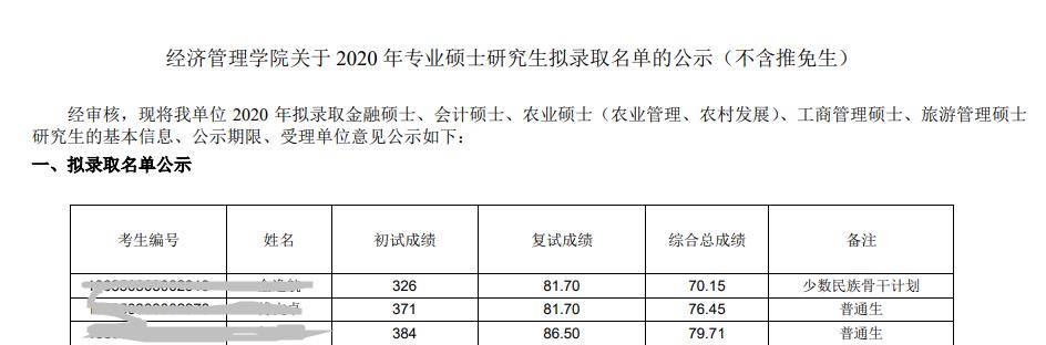 2020考研擬錄取名單:西南大學2020年金融碩士研究生擬錄取名單