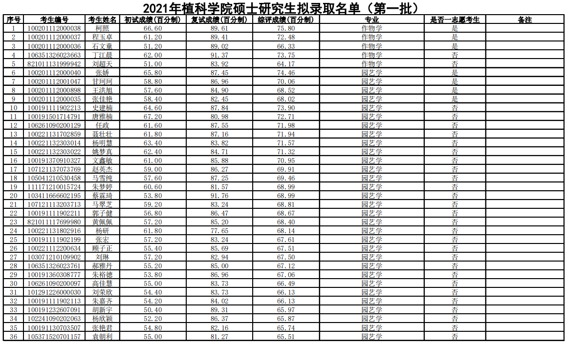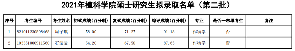 2021考研擬錄取名單:北京農(nóng)學(xué)院植物科學(xué)技術(shù)學(xué)院2021年碩士研究生擬錄取名單”的全部內(nèi)容,更多錄取名單相關(guān)內(nèi)容點擊
