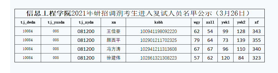 原文標題:信息工程學院2021研招調(diào)劑考生進入復(fù)試人員名單公示(一輪)