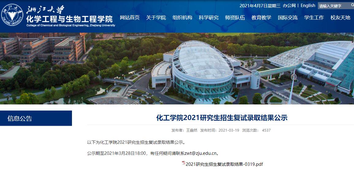 以上就是“2021考研擬錄取名單:浙江大學化學工程與生物工程學院2021年研究生招生復試錄取結果公示”的全部內容,更多錄取名單相關內容點擊2021考研擬錄取名單:全國各大院校2021年碩士研究生擬錄取名單匯總!查看詳情!