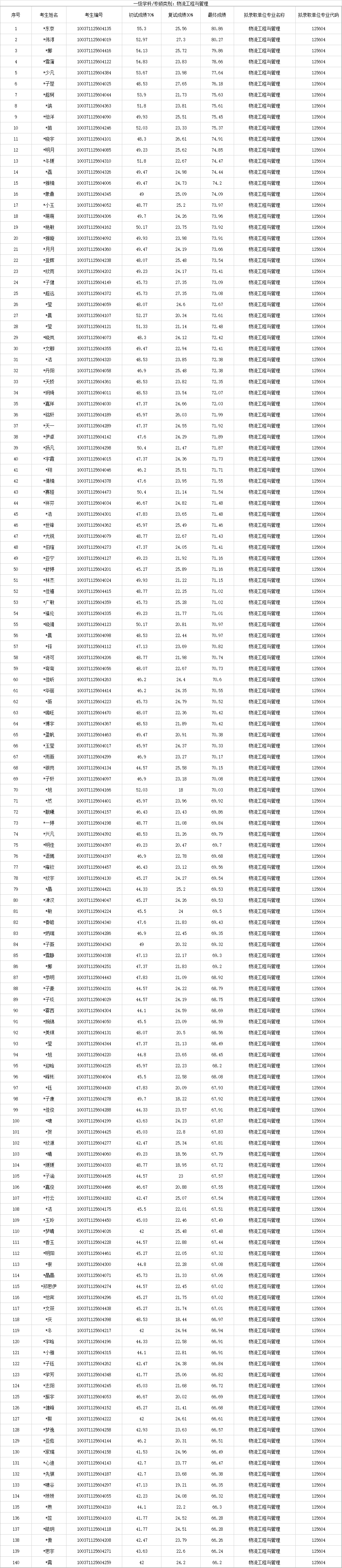 根據考生初試、復試成績綜合評定,北京物資學院2021年碩士研究生招生一志愿擬錄取名單如下。考生若對擬錄取名單有異議,可與我校研招辦聯系。