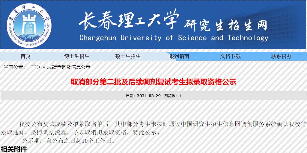 以上就是“2021考研擬錄取名單:長春理工大學(xué)取消部分第二批及后續(xù)調(diào)劑復(fù)試考生擬錄取資格公示”的全部內(nèi)容,更多錄取名單相關(guān)內(nèi)容點擊2021考研擬錄取名單:全國各大院校2021年碩士研究生擬錄取名單匯總!查看詳情!