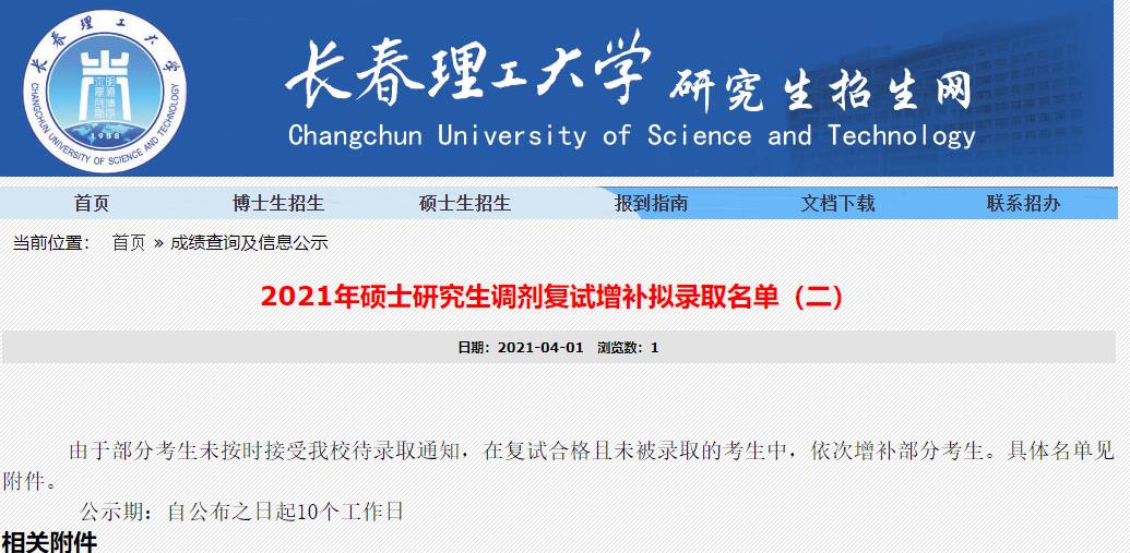 以上就是“2021考研擬錄取名單:長春理工大學2021年碩士研究生調劑復試增補擬錄取名單(二)”的全部內容,更多錄取名單相關內容點擊2021考研擬錄取名單:全國各大院校2021年碩士研究生擬錄取名單匯總!查看詳情!