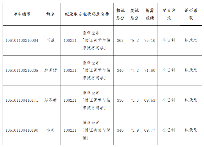 2021考研擬錄取名單:四川大學(xué)循證醫(yī)學(xué)教育部網(wǎng)上合作研究中心2021年碩士研究生擬錄取名單