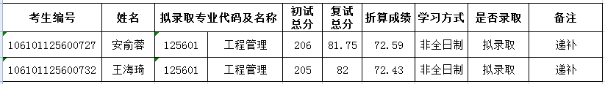 四川大學(xué)商學(xué)院2021年擬錄取工程管理碩士考生榮子捷、劉姝夢因個(gè)人原因放棄四川大學(xué)碩士研究生錄取資格。按照考生總成績從高到低排名擇優(yōu)錄取的原則,現(xiàn)進(jìn)行補(bǔ)擬錄取。具體名單公示如下: