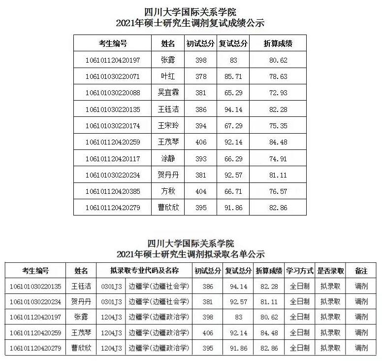 原文標題:四川大學國際關系學院2021年碩士擬錄取名單公示