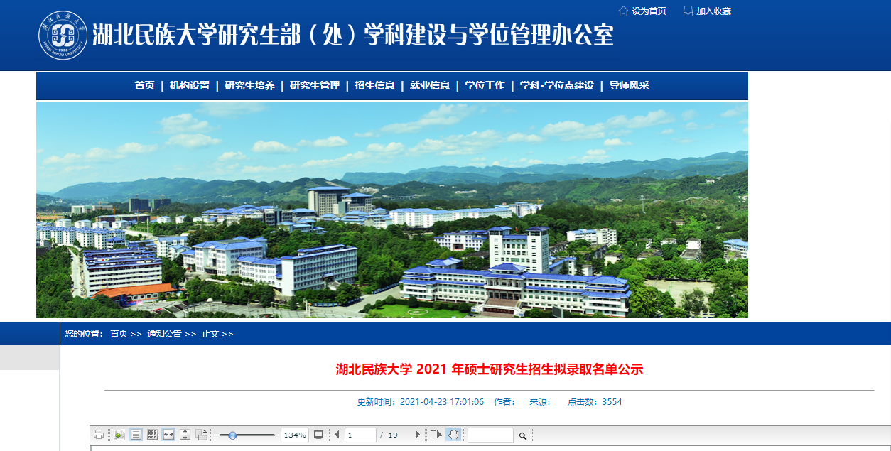 原文標題:湖北民族大學2021年碩士研究生一志愿普通計劃擬錄取名單公示