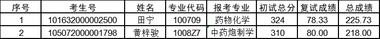 以上就是“2022考研擬錄取名單:長春中醫藥大學2022年碩士研究生招生考試藥物化學、中藥炮制學學科調劑考生順次補錄公示”的全部內容,更多錄取名單相關內容請持續關注本網站。