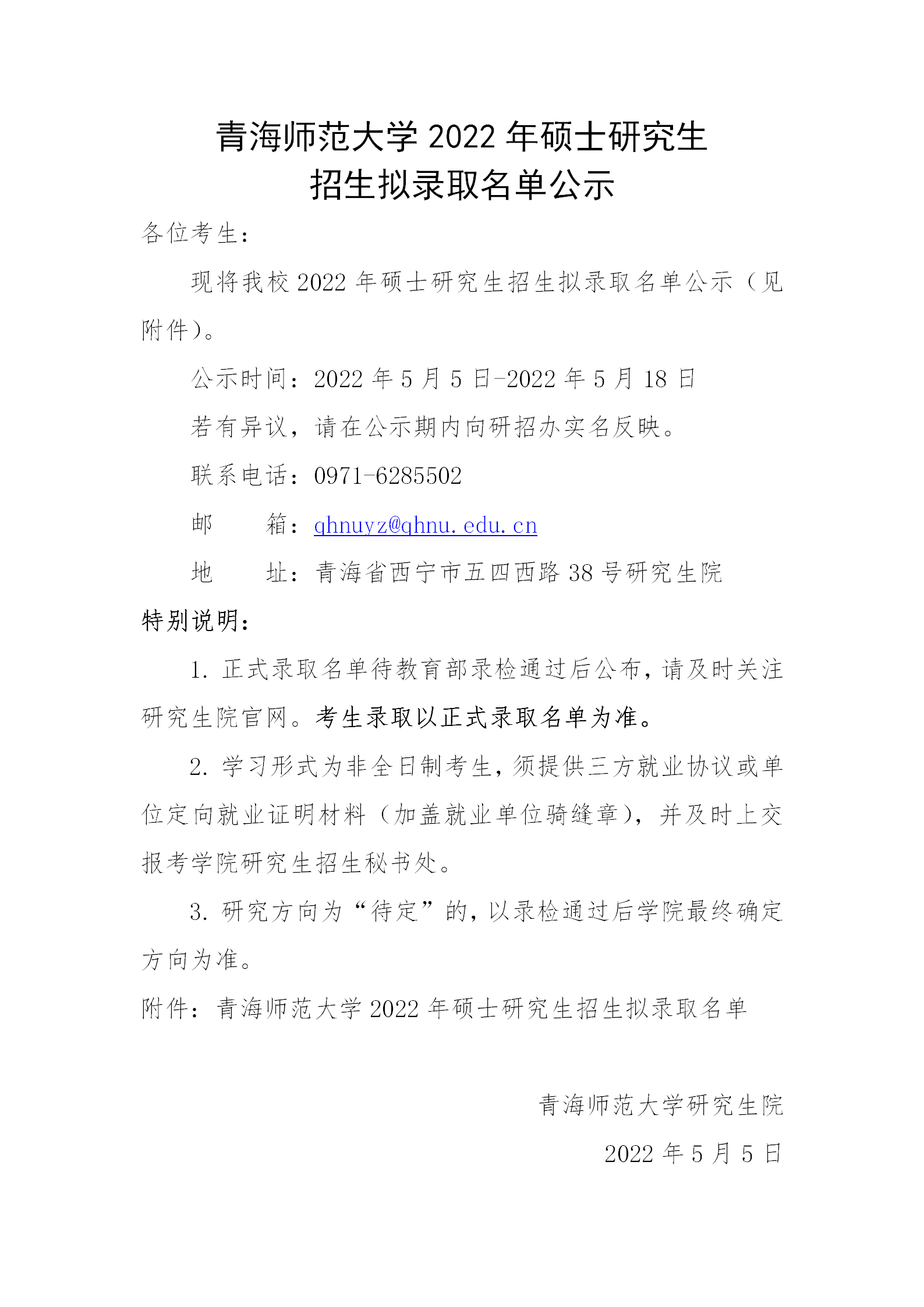 以上就是“2022考研擬錄取名單:青海師范大學2022年碩士研究生招生擬錄取名單公示”的全部內容,更多錄取名單相關內容請持續關注本網站。