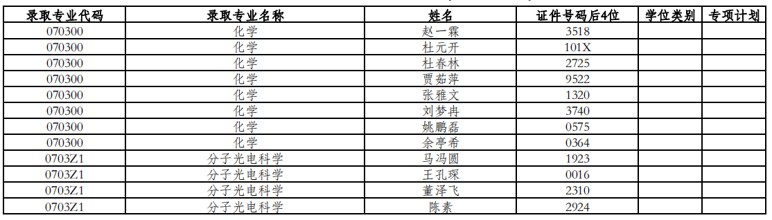 據學校工作安排,現將分子聚集態科學研究院2023級推薦免試生(含直博生)擬錄取名單進行公示,公示期自即日起10日。公示期內若有異議,可具名向本院招生工作領導小組提出申訴。