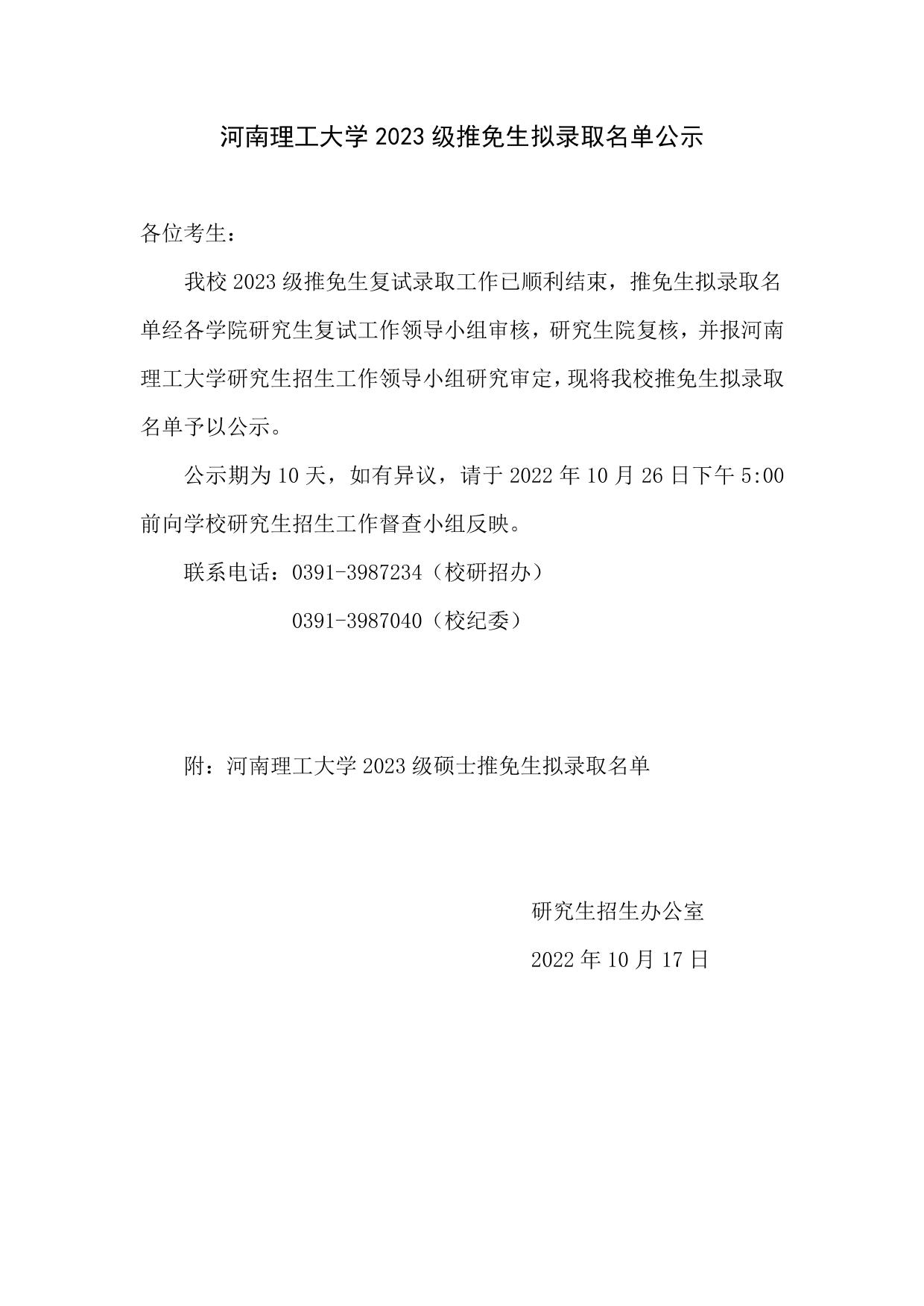 原文標(biāo)題:河南理工大學(xué)2023級推免生擬錄取名單公示