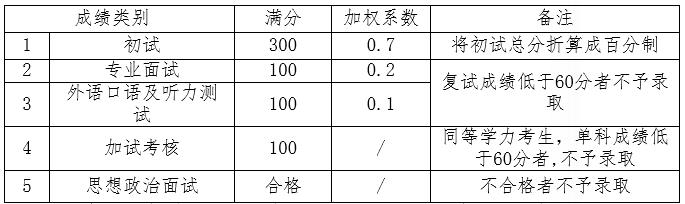 注:1.復試成績=專業面試成績×2/3+外語口語及聽力測試成績×1/3