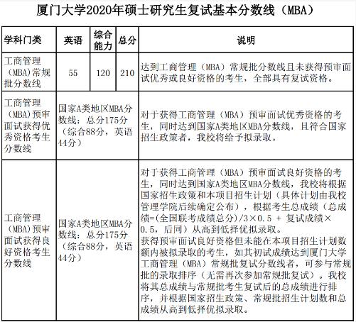 原文標(biāo)題:廈門大學(xué)2020年碩士研究生復(fù)試基本分?jǐn)?shù)線(MBA)