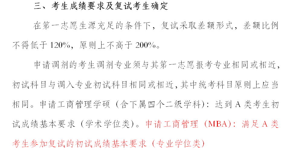 2020年全國碩士研究生招生考試考生進入復試的初試成績基本要求(A類考生專業學位類)175/44/88