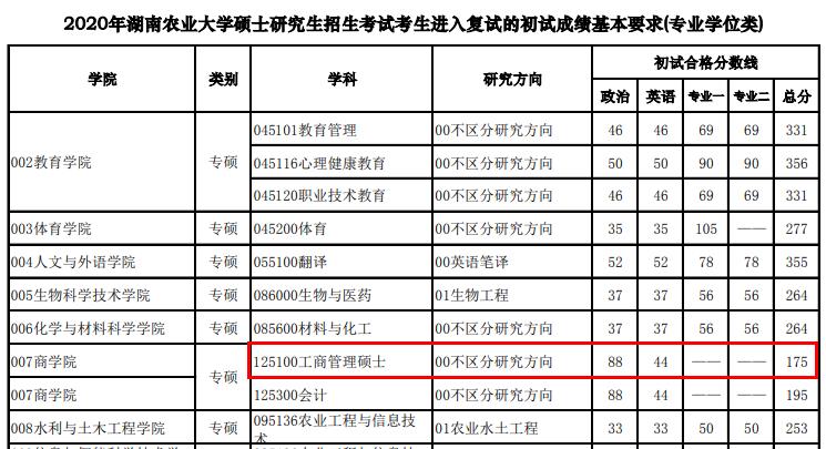 原文標題:2020年湖南農業大學碩士研究生招生考試考生進入復試的初試成績基本要求(專業學位類)