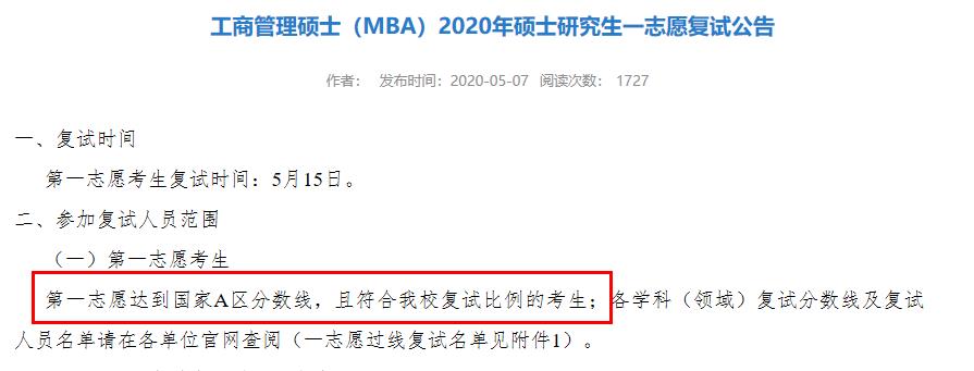 原文標(biāo)題:工商管理碩士(MBA)2020年碩士研究生一志愿復(fù)試公告