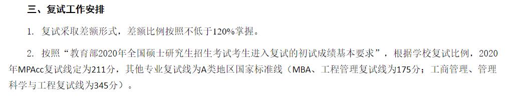 2020年全國碩士研究生招生考試考生進入復試的初試成績基本要求(專業(yè)學位類)A類175/44/88