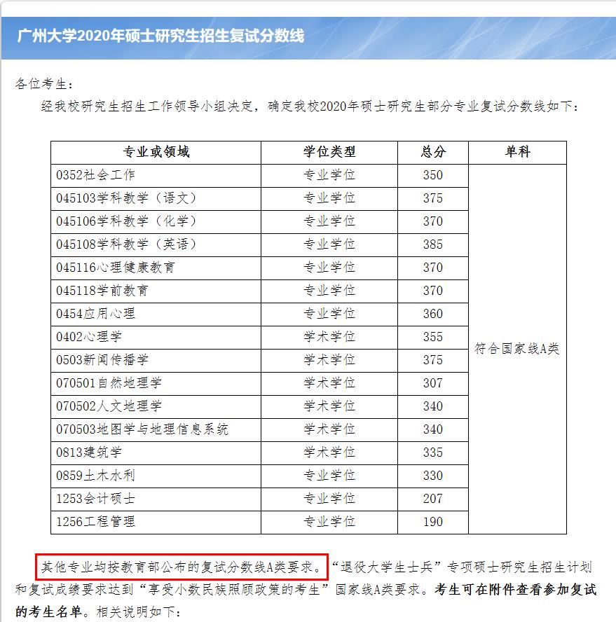 原文標題:廣州大學2020年碩士研究生招生復試分數線