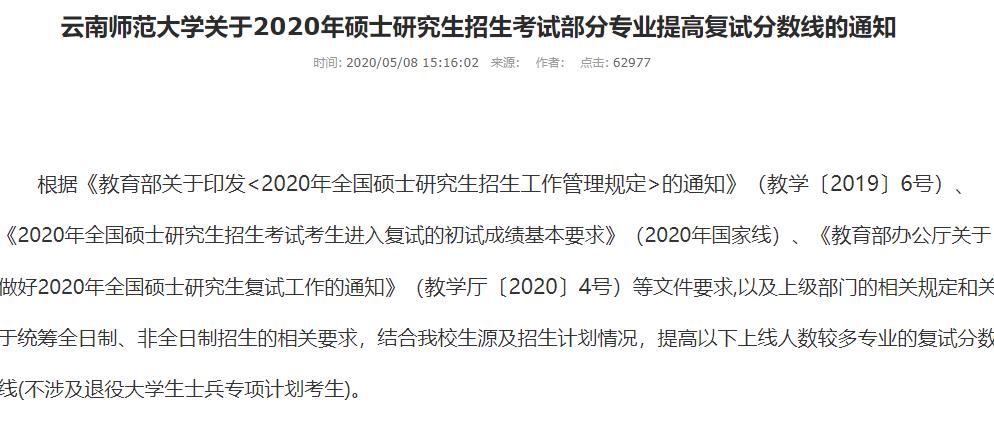 原文標題:云南師范大學關于2020年碩士研究生招生考試部分專業提高復試分數線的通知