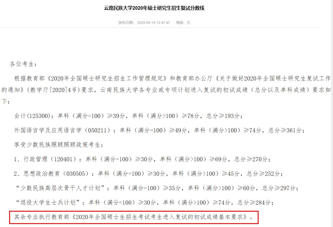 原文標題:云南民族大學2020年碩士研究生招生復試分數線
