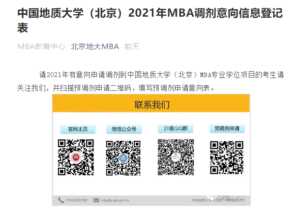 原文標(biāo)題:中國地質(zhì)大學(xué)(北京)2021年MBA調(diào)劑意向信息登記表