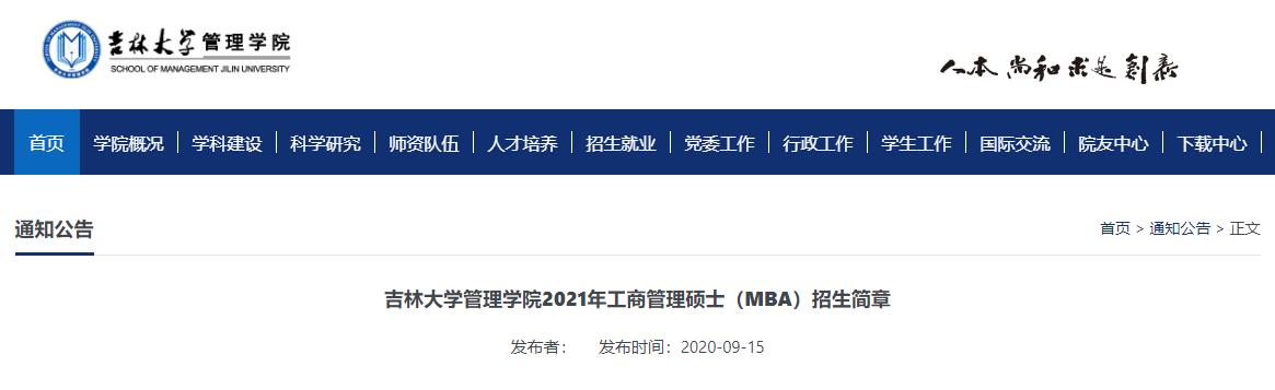 吉林大學管理學院2021年工商管理碩士(MBA)招生簡章