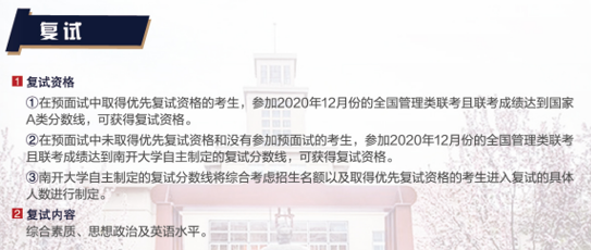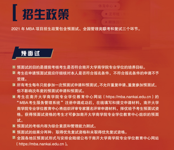 以上就是“2021MBA招生簡章:南開大學2021年工商管理碩士(MBA)招生簡章”的內容了,更多考研信息,請持續關注研線網。