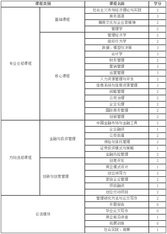 備注:學費以商學院MBA教育中心官網當年公布的收費為準。
