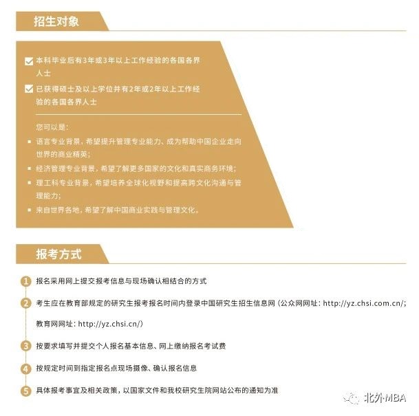 以上就是“2021MBA招生簡章:北京外國語大學2021年工商管理碩士(MBA)招生簡章”的內容了,更多考研信息,請持續關注,預祝大家考研成功!