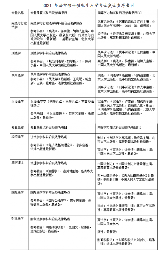 2021考研參考書目:江西財(cái)經(jīng)大學(xué)法學(xué)院法學(xué)碩士研究生入學(xué)考試復(fù)試參考書目”的全部?jī)?nèi)容!更多2021考研