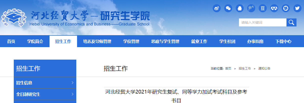 以上就是“2021考研參考書目:河北經貿大學2021年研究生復試、同等學力加試考試科目及參考書目”的相關內容,更多考研信息,請持續關注。
