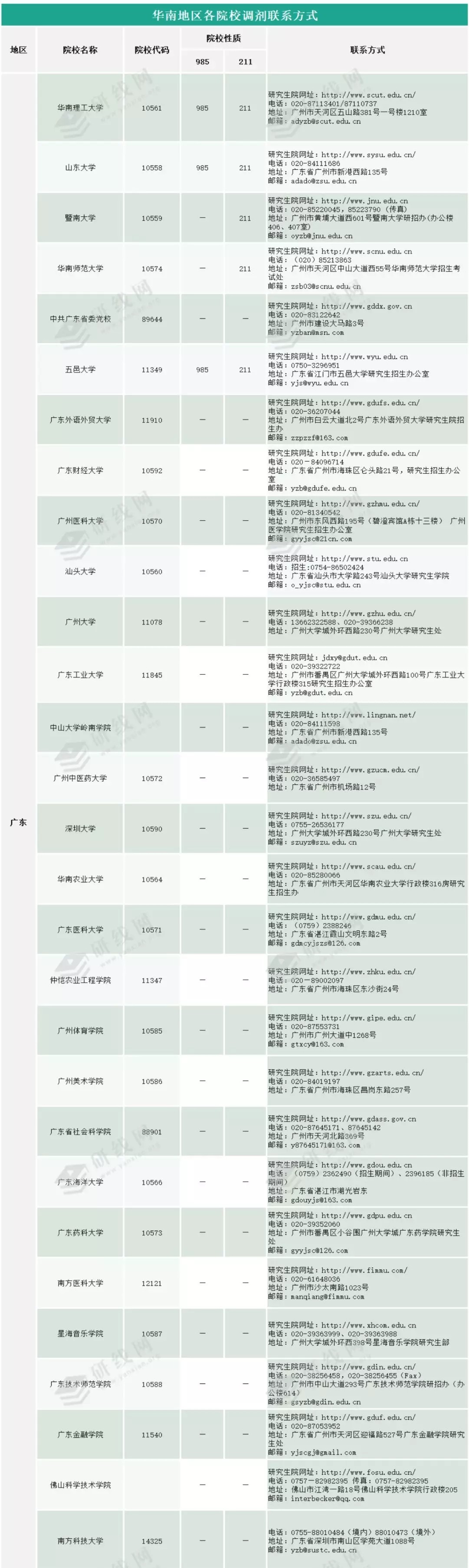 以上就是“2020年華南地區院校調劑聯系方式查詢”的全部內容,更多調劑相關內容,請關注“調劑信息”欄目。祝您考研成功!