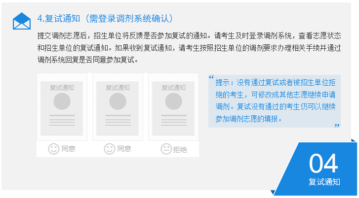 登陸調(diào)劑系統(tǒng)—查詢計(jì)劃余額—填報(bào)調(diào)劑志愿—參加復(fù)試—等待錄取通知