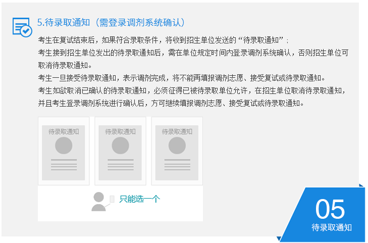 你收到擬錄取通知也就意味著你的調(diào)劑完成。你可以接受也可以取消。一旦接受你就沒(méi)有辦法繼續(xù)進(jìn)行調(diào)劑,你就可以等待錄取調(diào)劑院校的錄取通知了。如果你取消調(diào)劑院校給你的擬錄取通知,那就意味著你放棄了被錄取機(jī)會(huì),可以繼續(xù)參加調(diào)劑。