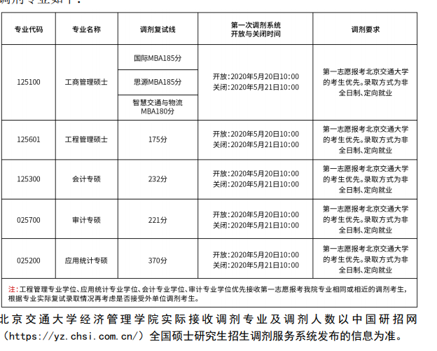 北京交通大學(xué)官方公布調(diào)劑系統(tǒng)開(kāi)放時(shí)間安排