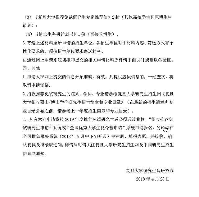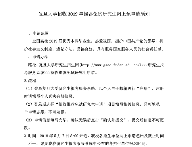 復旦大學招收2019年推薦免試研究生網上預申請須知