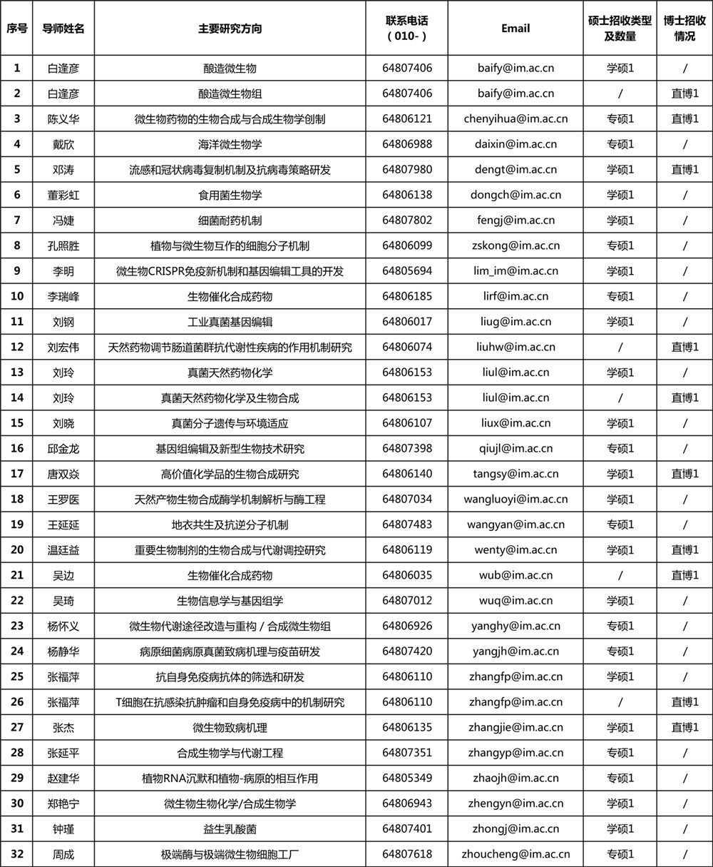 以上就是“2022推薦免試:中國科學院微生物研究所接收2022年推薦免試研究生及直博生報名通知”的內容!更多考研信息,請持續關注。