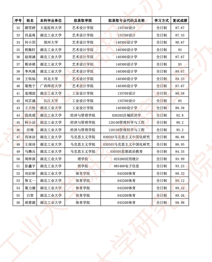 附件:湖北工業(yè)大學2024年接收推薦免試碩士研究生擬錄取名單