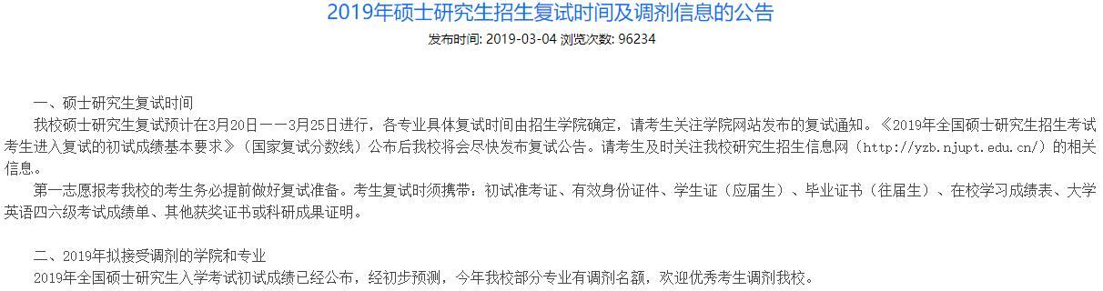 圖片來源:南京郵電大學研究生招生信息網截圖