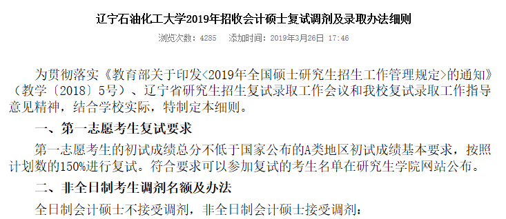 全日制會計碩士不接受調劑,非全日制會計碩士接受調劑: